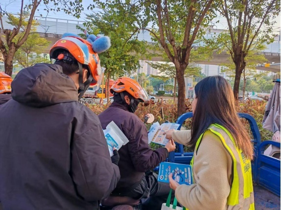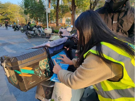 为扩大禁毒知识宣传的覆盖范围,提升外卖骑手对禁毒知识的了解程度,构建牢固的禁毒安全屏障,近期,仲恺高新区惠环街道禁毒工作组来到时尚公园开展了禁毒知识宣传活动。