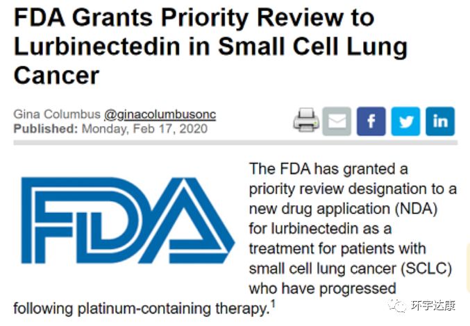 小细胞肺癌新药鲁比卡丁(lurbinectin)获FDA优先审批