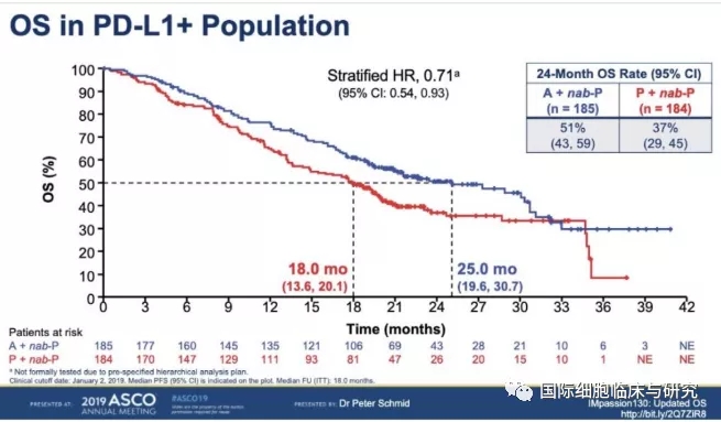 研究结果显示,在意向性治疗(ITT)人群中,联合治疗组PFS为7.2个月,对照组为5.5个月,具有统计学显著差异;在PD-L1阳性人群中,联合治疗组中位PFS为7.5个月,对照组为5个月,具有显著统计学差异。随访结果显示,PD-L1阳性患者总生存期(OS)从15.5个月延长至25.0个月,结果令人鼓舞。
