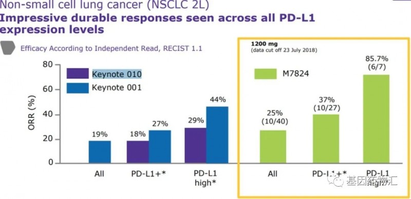 其中,500 mg剂量组患者的整体缓解率为17.5%,1200 mg剂量组的患者整体缓解率为25.0%;而在1200 mg剂量组中,PD-L1表达阳性的患者整体缓解率为36.0%;在PD-L1表达水平≥80%的患者亚组中,患者的整体缓解率更是达到了85.7%!