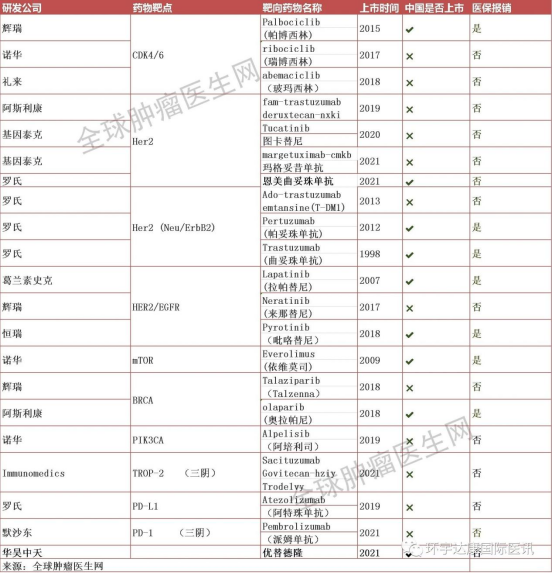 针对各靶点已经有相应治疗药物,如下表