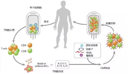 4. 把扩增好的 CAR-T 细胞输回患者体内。